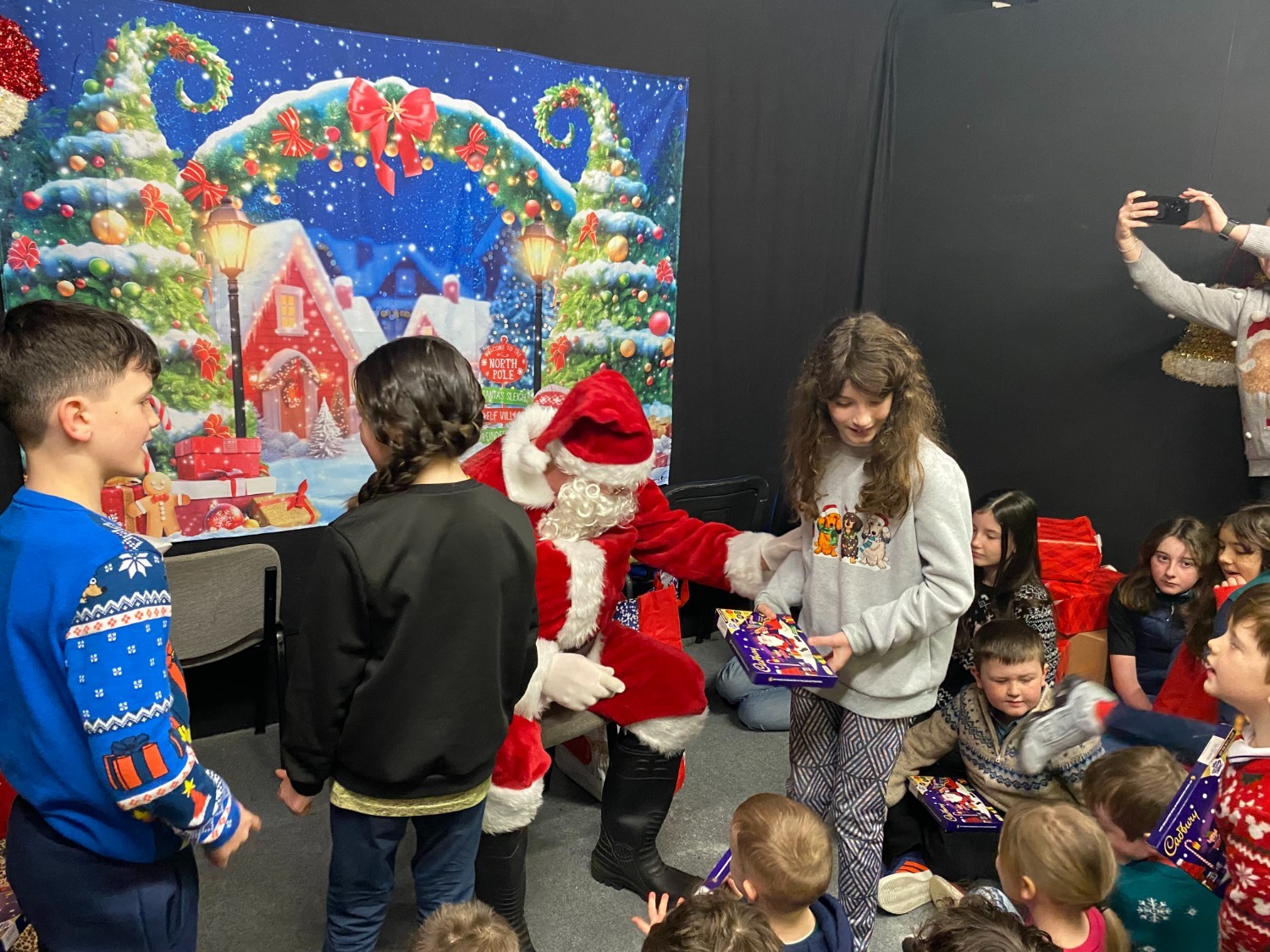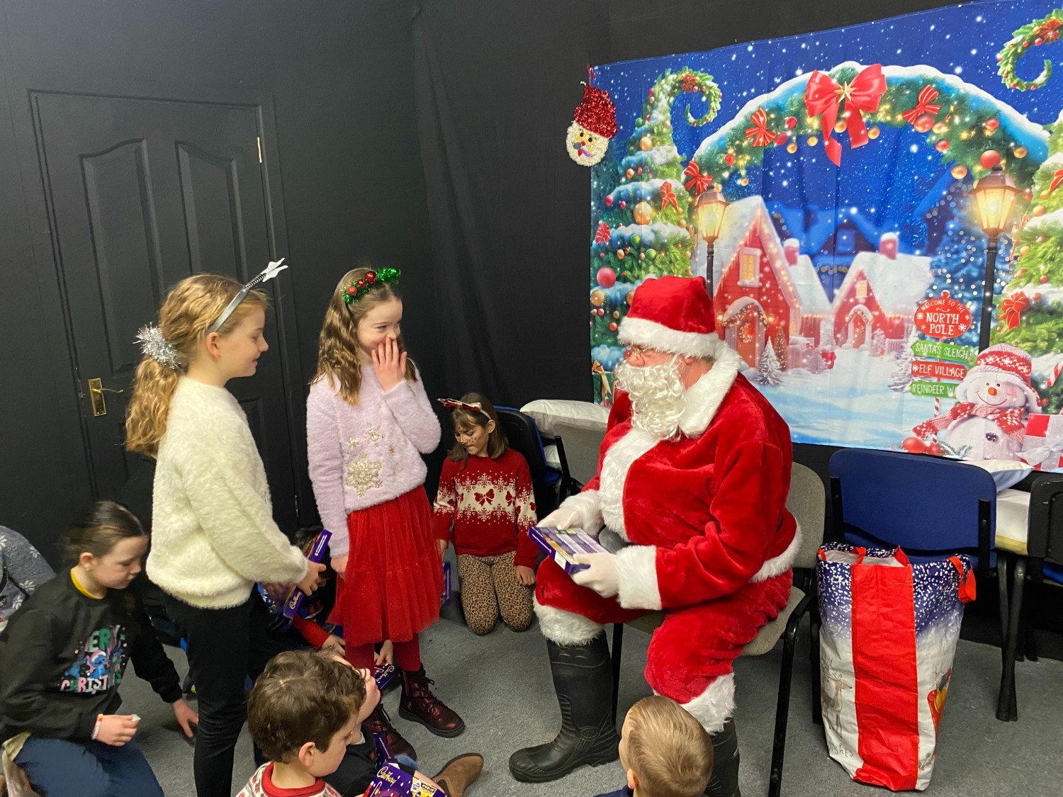 There was lots of excitement as Santa arrived just as the Junior Room were finishing up their rehearsal this morning. He chatted with the children and asked lots of questions about our Christmas show. Spreading Christmas cheer and bringing plenty of smiles he had a treat for every child.